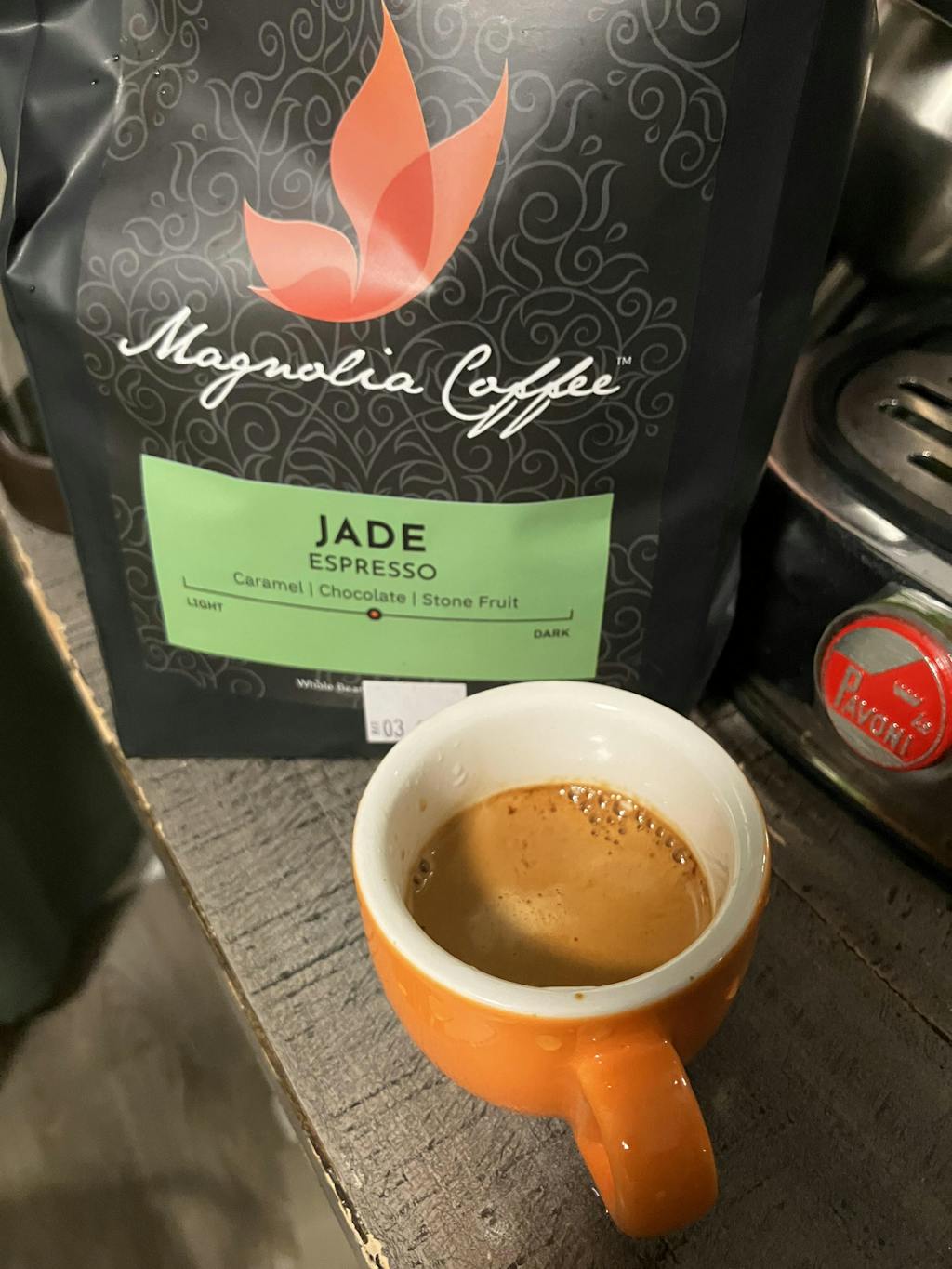 This is one of our favorites from Magnolia. Delicious espresso and latte. Always easy to dial in because it is so skillfully roasted. We've found with all our Magnolia purchases that the quality of the roast not only brings out the best in the beans, but it makes dialing in much easier and lots less wasteful. Nice.