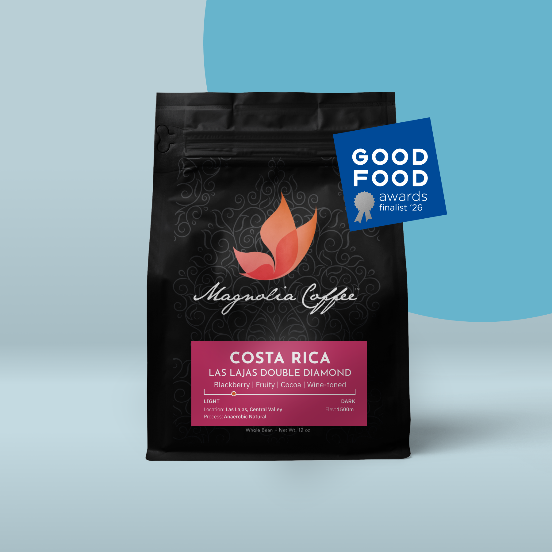 "Wild yet polished. Blackberry, tamarind, baker’s chocolate, violet, molasses in aroma and cup. Bright, juicy acidity; creamy, dense mouthfeel. The finish is long and wine-toned, with deep fruit and cocoa. A strikingly complex anaerobic Costa Rica that balances its fruit-forward profile with sweetness and depth — adventurous yet refined." (Oct, Coffee Review)